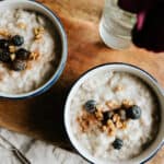 Serve in a bowl and add more milk or water if you want it thinner. Sprinkle with cinnamon and sweeten with sugar or honey. Serve garnished with blueberries and walnuts.